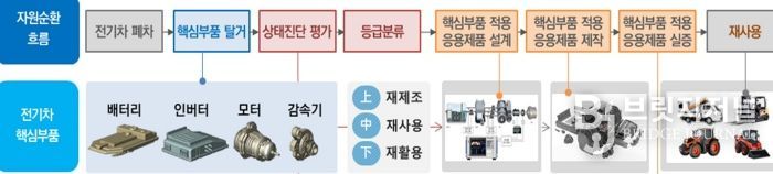 이번 사업은 단순 재활용을 넘어, 전기차 폐배터리를 중심으로 모터·감속기·인버터 등 핵심 구동부품까지 포함한 전주기 순환이용 체계를 구축하는 것이 핵심이다.