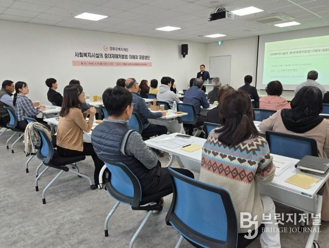 브릿지저널 김경미 기자 | 강화군복지재단이 지난 6일, 사회복지시설 경영책 임자 및 안전관리자를 대상으로'사회복지시설 중대재해처벌법 이해와 대응 방안' 교육을 실시했다.