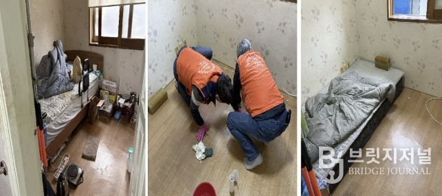 이날 추진단원들은 직접 현장을 방문해 어르신의 안전을 위협하던 높은 침대 프레임을 철거하고 폐기물을 처리하는 등 구슬땀을 흘렸다. 또한, 프레임 제거 후 어르신이 바닥에서 안정적으로 생활할 수 있도록 새 요와 이불 세트를 전달하며 세심한 배려를 더했다.