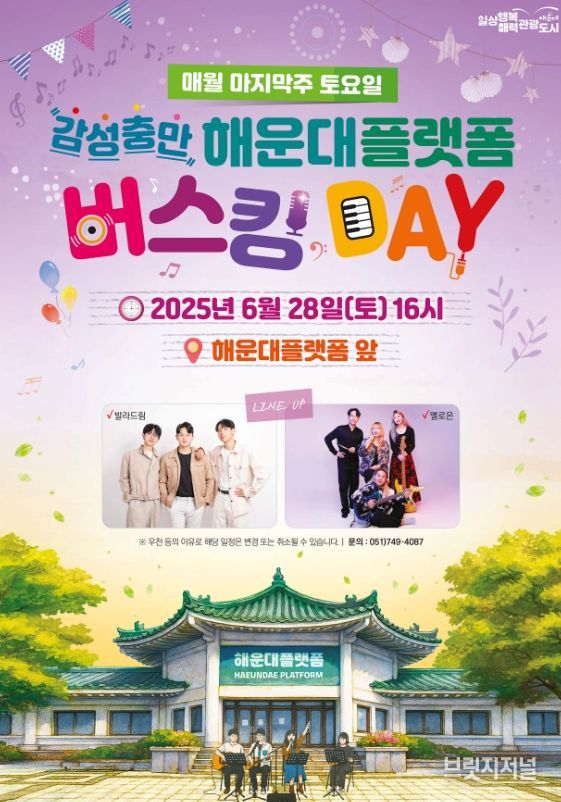 브릿지저널 윤나영 기자 | 해운대구는 오는 6월부터 10월까지 매월 마지막 토요일, 해운대플랫폼 광장에서 ‘~감성충만~ 해운대플랫폼 버스킹 DAY' 공연을 개최한다.