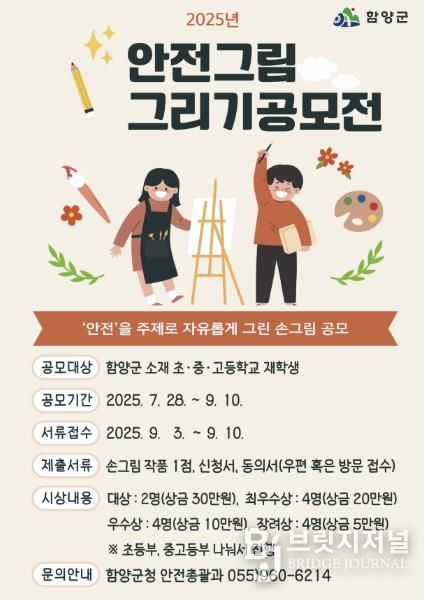 브릿지저널 김경미 기자 | 함양군은 학생들의 안전의식 함양과 안전 문화 확산을 위해 9월 10일까지 ‘2025년 안전그림 그리기 공모전’을 개최한다고 밝혔다.