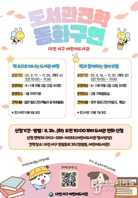 브릿지저널 정보영 기자 | 대전 서구 어린이도서관은 오는 9월부터 관내 보육시설 및 유치원 아동을 대상으로 하반기 견학 연계 동화 구연 프로그램을 운영한다.
