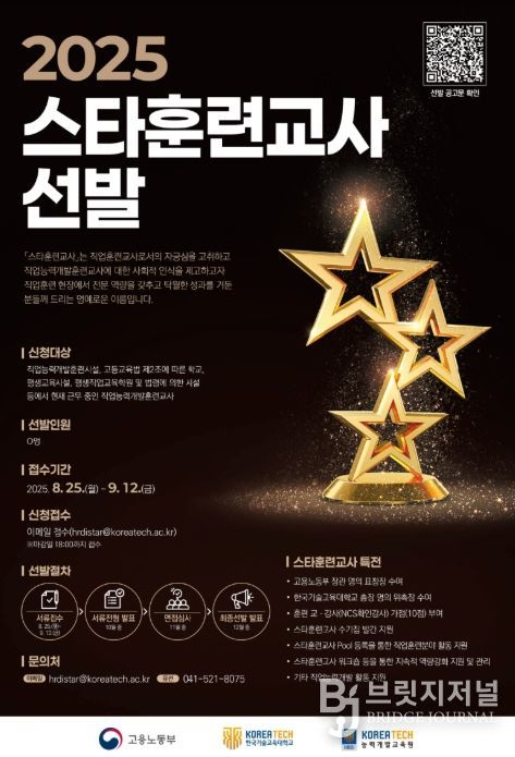 브릿지저널 정보영 기자 | 한국기술교육대학교 능력개발교육원(원장 이진구)이 직업훈련 분야에서 뛰어난 역량을 갖고 활동하고 있는 직업능력개발훈련교사를 대상으로 ‘스타훈련교사’를 선발한다.