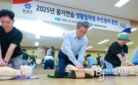 브릿지저널 정보영 기자 | 대전 유성구는 20일 전민평생학습센터에서 을지연습의 일환으로 전시상황에 대비한 민방위 공습 대피 훈련을 실시했다.