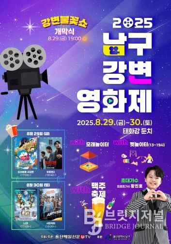 브릿지저널 윤나영 기자 | 울산 남구는 오는 29일과 30일까지 이틀간, 태화강 제1둔치에서 구민들과 함께하는 2025 강변영화제를 개최한다고 밝혔다.