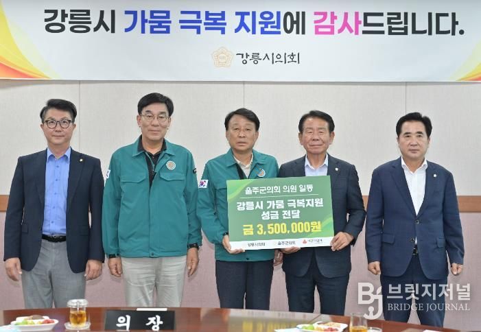 브릿지저널 윤나영 기자 | 울주군의회는 2일 극한 가뭄으로 어려움을 겪고 있는 강릉시를 돕기 위해 성금 350만 원을 강릉시의회에 전달했다.