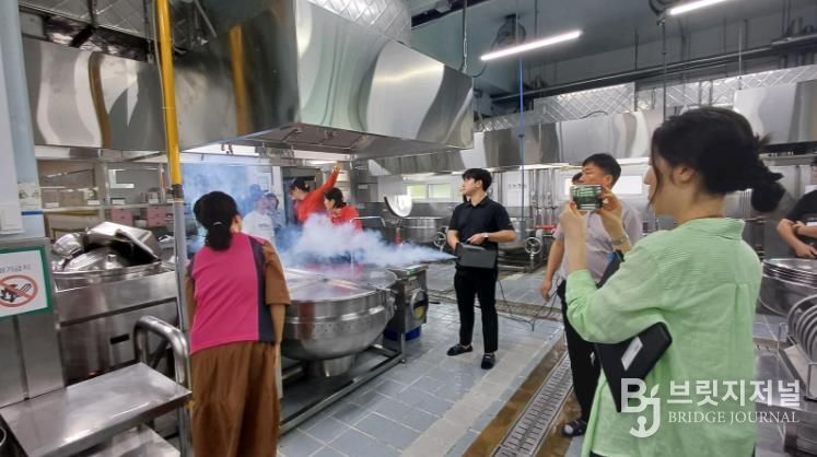 점검단은 고온 조리 과정에서 발생하는 조리흄 배출 상태와 환기시설 작동 여부를 확인하고, 급식실 근무환경 개선 효과를 살폈다.