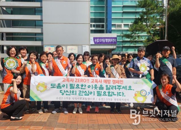 브릿지저널 김진석 기자 | 대구 수성구 수성2·3가동 지역사회보장협의체(희망나눔위원회)와 통우회는 지난 3일 수성시장네거리 일대에서 고독사 예방 및 복지사각지대 위기가구 발굴 캠페인을 실시했다.