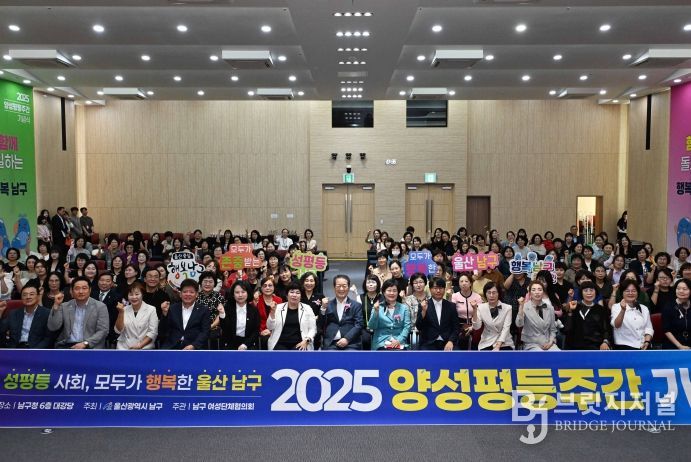 브릿지저널 윤나영 기자 | 울산 남구(구청장 서동욱)는 일상 속 양성평등 문화 확산을 위해 4일 남구청 6층 대강당에서 ‘2025년 양성평등주간 기념행사’를 개최했다.