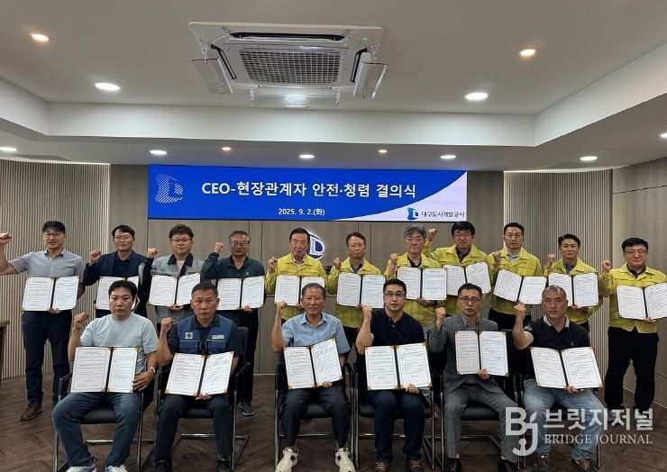 브릿지저널 김진석 기자 | 대구도시개발공사는 지난 9월 2일 본사에서 주요 6개 건설 현장 책임건설사업관리인과 현장소장 등이 참석한 가운데 ‘안전·청렴 결의식’을 개최했다.