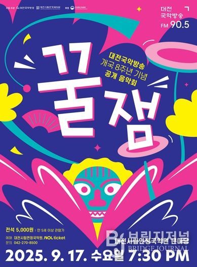 브릿지저널 정보영 기자 | 대전시립연정국악원은 대전국악방송 개국 8주년을 기념해 오는 9월 17일 오후 7시 30분 국악원 큰마당에서 공개 음악회 ‘꿀잼’을 개최한다.