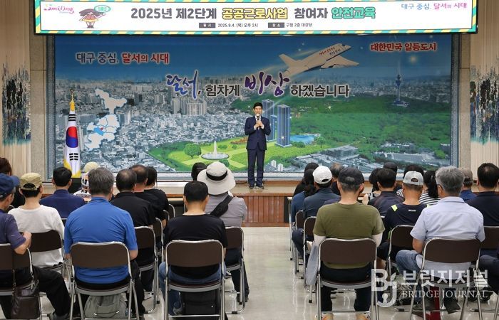 브릿지저널 김진석 기자 | 대구 달서구는 지난 4일 구청에서 2025년 제2단계 공공근로사업 참여자 68명을 대상으로 사례 기반 안전교육을 실시했다.