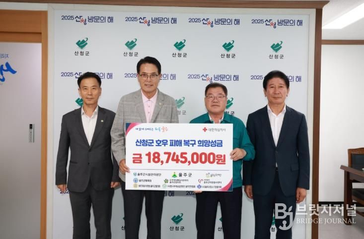 브릿지저널 윤나영 기자 | 울산 울주군이 8일 집중호우 피해를 입은 산청군을 돕기 위해 울주군청 직원들과 지역 사회단체가 함께 마련한 성금 1천874만5천원을 전달했다.