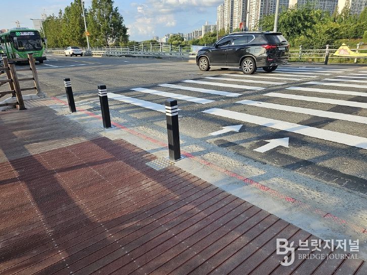 해당 구간은 그동안 통학 시간대 보행신호 대기시간이 지나치게 길고, 방음벽 구조 때문에 6m 횡단 보도의 실제 사용 폭이 4m에 불과해 혼잡과 안전사고 위험이 높았다.