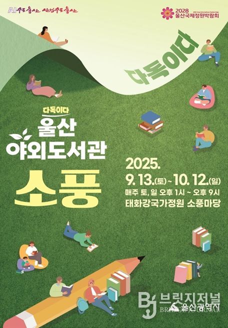 브릿지저널 윤나영 기자 | 울산도서관은 오는 9월 13일부터 10월 12일까지 매주 토·일요일 태화강 국가정원 소풍마당에서 울산 야외도서관 ‘소풍’을 운영한다고 밝혔다.