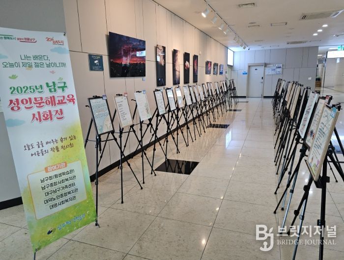 브릿지저널 김진석 기자 | 대구 남구는 9월 8일부터 19일까지 2주간 영남대학교병원 호흡기센터 로비에서 ‘2025년 남구 찾아가는 성인문해교육 시화전’을 개최한다.