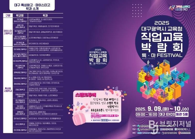 브릿지저널 김진석 기자 | 대구시교육청은 9월 9일부터 9월 10일까지 2일간 대구 엑스코 동관 5홀에서 2025. 대구광역시교육청 직업교육박람회 ‘특·마 Festival’행사를 개최한다