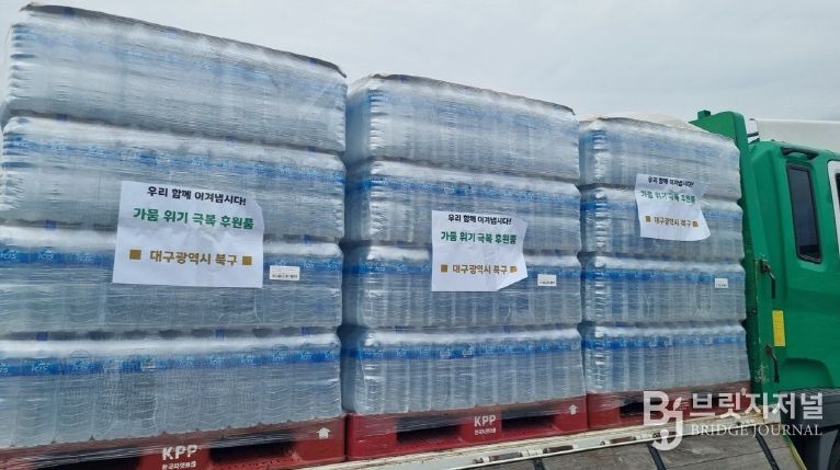 브릿지저널 김진석 기자 | 대구 북구청은 9월 9일 심각한 가뭄으로 생활용수 부족과 제한급수에 직면한 자매도시 강릉시에 긴급 구호물품으로 2리터 생수 3,726병을 지원했다.
