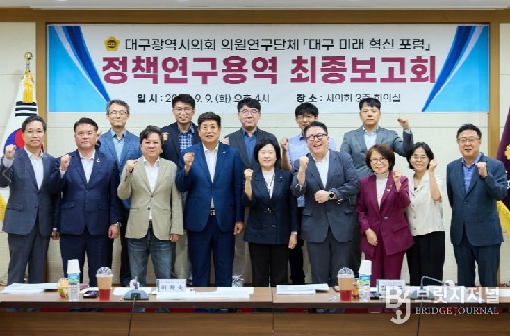 브릿지저널 김진석 기자 | 대구시의회 의원연구단체 ‘대구미래혁신포럼’(대표 이재숙 의원)은 9월 9일, 시의회 3층 회의실에서 소속 의원들이 참석한 가운데 정책연구용역 최종 보고회를 개최했다.