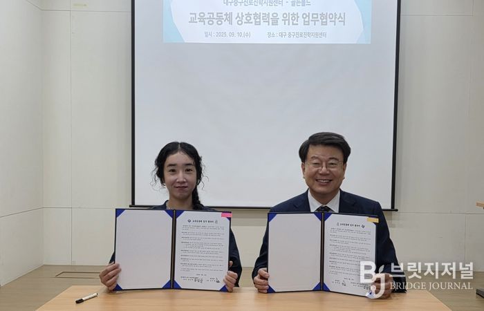 브릿지저널 김진석 기자 | 대구 중구진로진학지원센터는 지난 10일 지역 공방 골든볼드, 스틸웨이브, 향품달과 청소년 진로체험 및 진로교육 활성화를 위한 업무협약(MOU)을 체결했다.