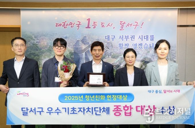 브릿지저널 김진석 기자 | 대구 달서구는 지난 13일 국회의사당 의원회관에서 열린 ‘제9회 청년의 날 기념식’에서 2025년 청년친화 헌정대상 ‘종합대상’을 수상했다고 16일 밝혔다.