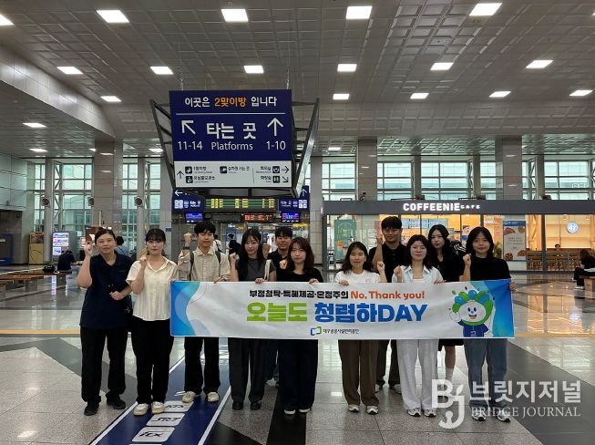 브릿지저널 김진석 기자 | 대구공공시설관리공단은 지난 9월 12일, 동대구역에서 청년 인턴들과 함께 시민들을 대상으로 청렴 캠페인을 펼쳤다.