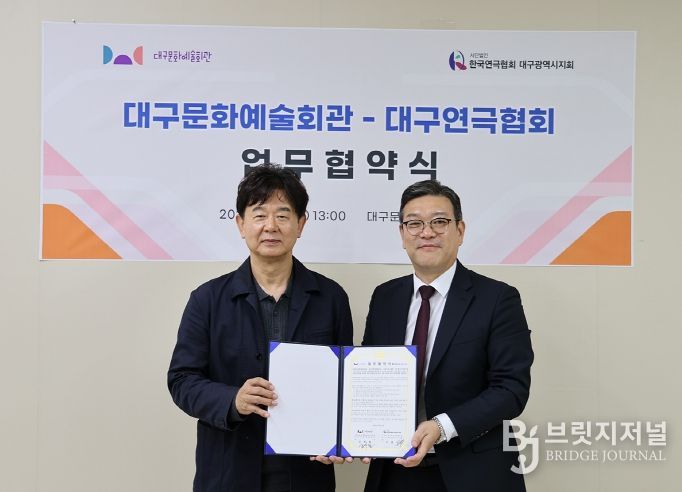 브릿지저널 김진석 기자 | (재)대구문화예술진흥원 대구문화예술회관은 대구연극협회와 업무협약(MOU)을 체결하고, 지역 연극 생태계 강화와 지속 가능한 성장 기반 마련을 위해 협력하기로 했다.
