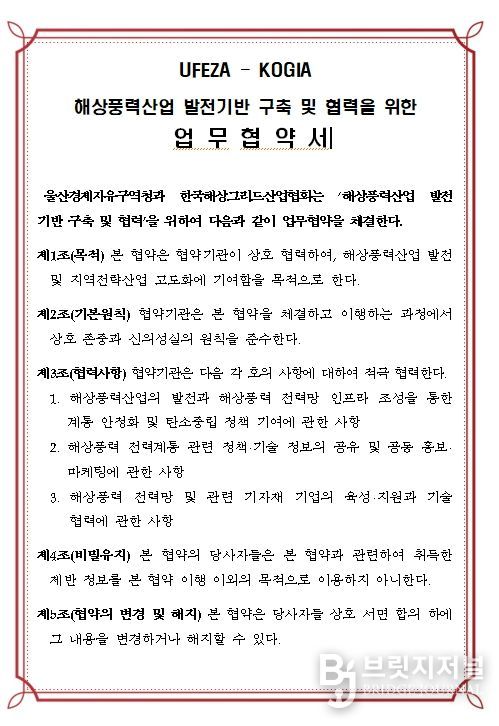 브릿지저널 윤나영 기자 | 울산경제자유구역청과 한국해상그리드산업협회가 울산의 해상풍력산업 발전 기반 구축을 위해 힘을 모은다.