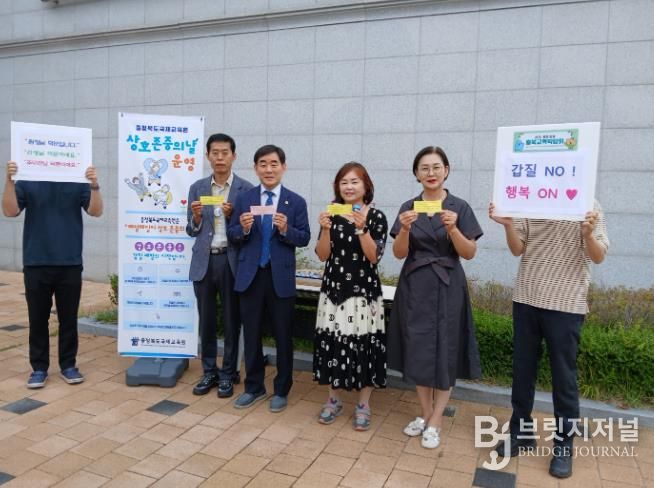 브릿지저널 김경미 기자 | 충청북도교육청 직속기관 국제교육원은 18일, 청렴 집중 주간을 맞아 공정과 소통의 청렴문화 전파‧확산 및 갑질예방‧상호존중 문화 정착을 위한 '갑질 버리고, 존중 키우고' 상호존중 캠페인을 전개했다.