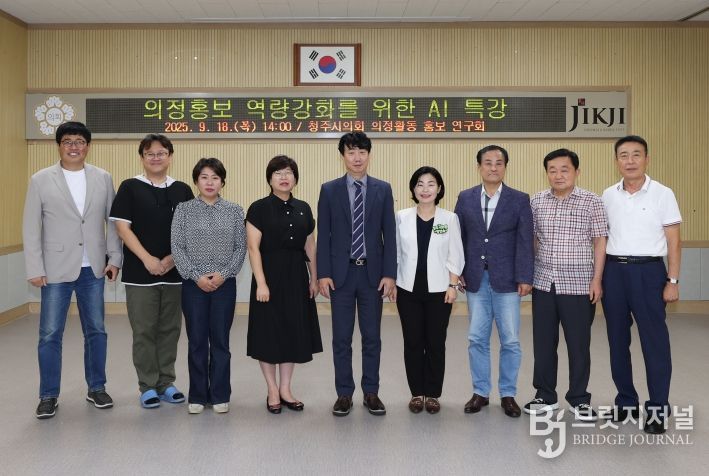 브릿지저널 김경미 기자 | 청주시의회 ‘의정활동 홍보 연구회’(대표의원 이인숙)는 18일 오후 2시, 청주시의회 특별위원회실에서 ‘AI 활용 의정홍보 특강’을 개최했다.