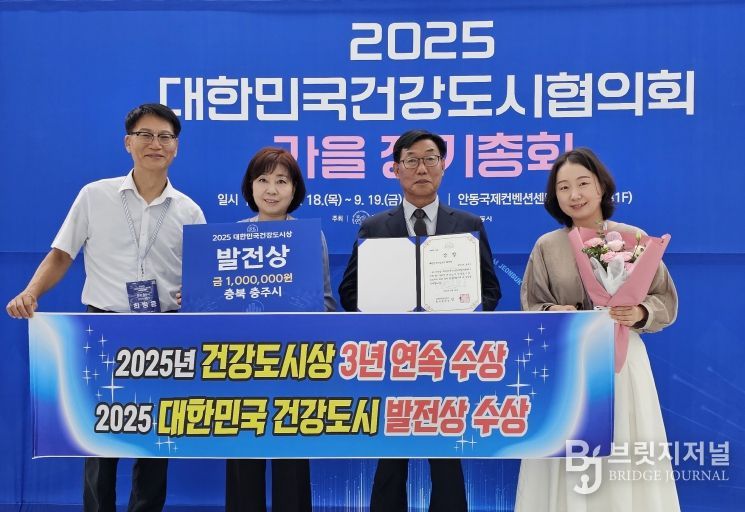 브릿지저널 김경미 기자 | 충주시가 18일 안동 국제컨벤션센터에서 열린 제21회 대한민국건강도시협의회 가을 정기총회에서 ‘대한민국 건강도시상 발전상’을 수상했다.