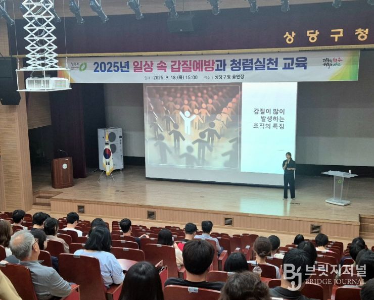 브릿지저널 김경미 기자 | 청주시는 18일 상당구청 공연장에서 청주시 직원 300명을 대상으로 일상 속 갑질 예방과 청렴 실천 교육을 실시했다.