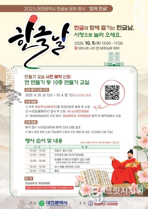 이번 행사는 대전시가 주최하고 한남대학교 국어문화원이 주관하며, 한글의 창의성과 과학성을 널리 알리고 우리말과 글의 소중함을 시민과 함께 나누기 위해 기획됐다.