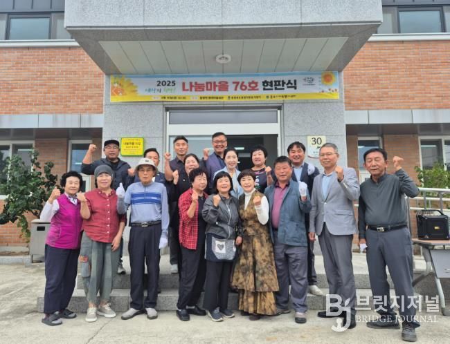 브릿지저널 김경미 기자 | 충주시자원봉사센터가 19일 동량면 용대마을회관에서 마을주민 및 자원봉사자 50여명이 참여한 가운데 나눔마을 76호 현판식을 가졌다.