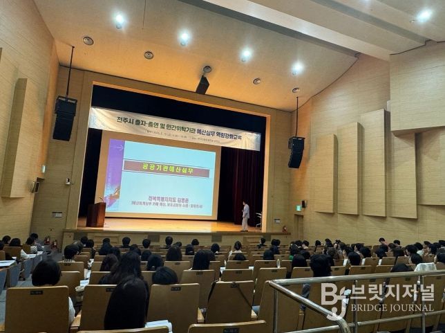 브릿지저널 윤나영 기자 | 전주시는 19일 한국전통문화전당 공연장에서 출연기관과 민간위탁기관의 예산·회계 담당자 200여 명을 대상으로 ‘예산회계 실무교육’을 실시했다.