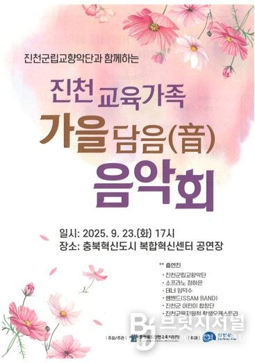 브릿지저널 김경미 기자 | 충청북도진천교육지원청은 오는 9월 23일 17시,충북혁신도시 복합혁신센터에서 '2025. 진천교육가족 가을담음(音) 음악회'를 개최한다.