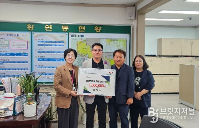 심재순 과장은 “황연동 어려운 이웃들을 위해 기탁할 수 있어 기쁘다”며, “도움이 필요한 분들에게 잘 전달되길 바란다”고 전했다.
