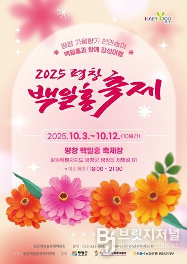 브릿지저널 윤나영 기자 | 평창군은 오는 10월 3일부터 10월 12일까지 10일간, ‘가을향기, 백일홍으로 물들다’라는 주제로 평창읍 일원에서 2025 평창 백일홍축제를 개최한다.