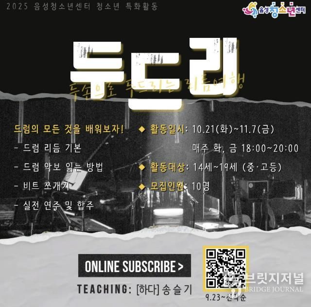 브릿지저널 김경미 기자 | 음성청소년센터는 청소년 특화활동 ‘두.드.리’를 운영한다고 22일 밝혔다.
