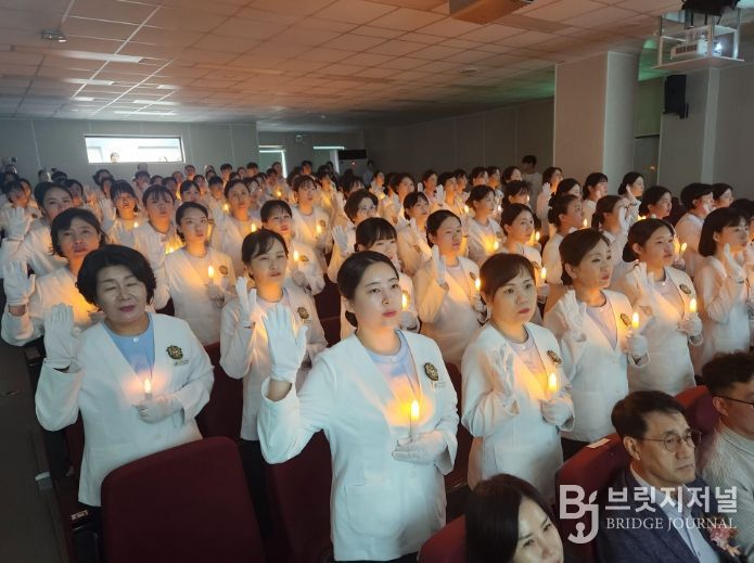 브릿지저널 윤나영 기자 | 송호대학교 간호학과는 19일 교내 창조관 간호비전홀에서 제13회 나이팅게일 선서식을 열고 간호 전문인으로서의 봉사와 헌신을 다짐했다.