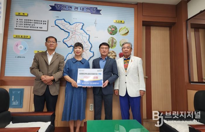 브릿지저널 김경미 기자 | 충북 괴산군 장연면는 농어촌공사 괴산증평지사(지사장 박재우)가 장연면사무소를 방문해 추석 명절을 맞아 어려운 이웃을 위한 성금 50만 원을 기탁했다고 22일 밝혔다.