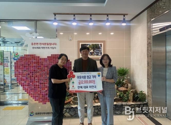 브릿지저널 윤나영 기자 | 이진국 한텍 대표가 22일 경남사회복지공동모금회를 통해 울주군 웅촌면 저소득층 및 한부모(조손) 가정에 기부금 1천200만원을 전달했다.