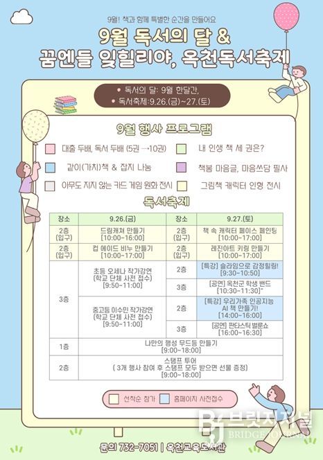 브릿지저널 김경미 기자 | 옥천교육지원청 옥천교육도서관이 9월 독서의 달을 맞아 '꿈엔들 잊힐리야, 옥천독서축제'를 개최한다.