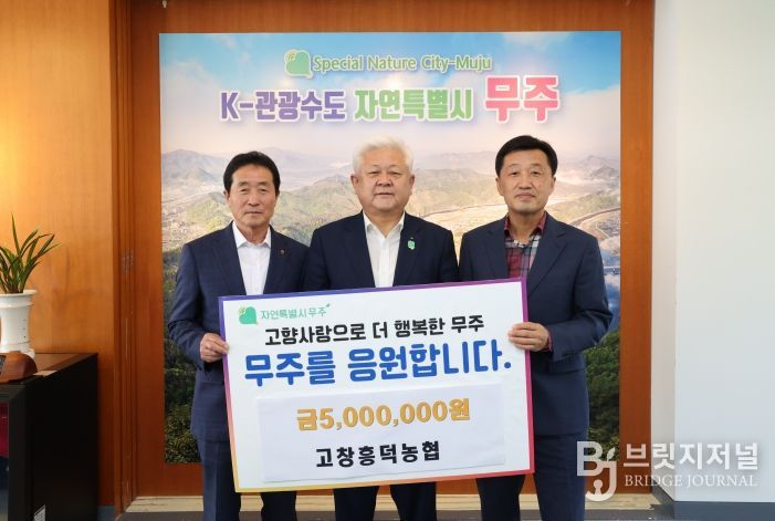 브릿지저널 윤나영 기자 | 전북특별자치도 고창흥덕농협 임직원들이 지난 23일 무주군에 고향사랑 기부금 5백만 원을 기탁했다.