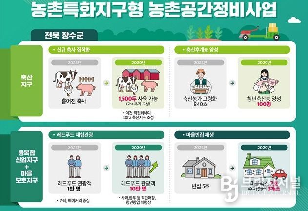 브릿지저널 윤나영 기자 | 장수군이 농림축산식품부가 주관하는 ‘2025년 특화지구형 농촌공간정비사업’ 2차 공모에 최종 선정됐다고 23일 밝혔다.