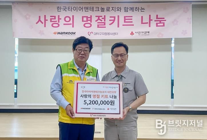 브릿지저널 정보영 기자 | 대전 대덕구는 23일 한국타이어앤테크놀로지 대전공장 임직원이 추석을 앞두고 지역 어려운 이웃을 위해 ‘사랑의 명절키트 나눔’을 진행했다고 밝혔다.