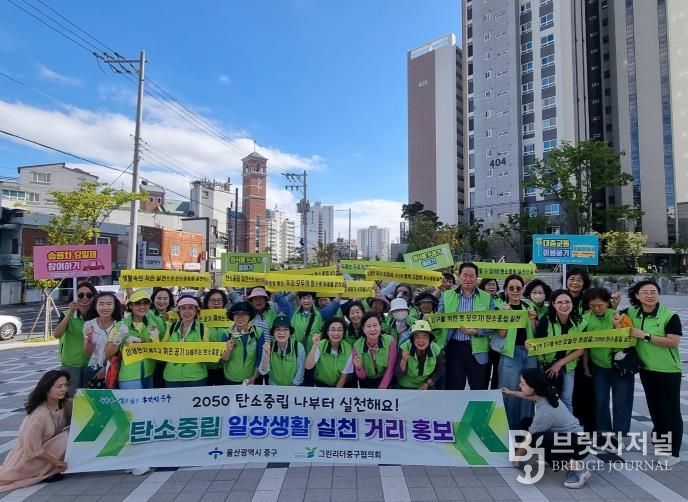브릿지저널 윤나영 기자 | 울산 중구와 중구그린리더협의회가 9월 23일 오후 2시 울산중앙새마을금고 일대에서 탄소중립 거리 홍보 활동을 펼쳤다.