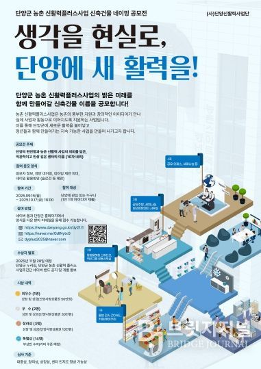 브릿지저널 김경미 기자 | 충북 단양군 농촌신활력플러스사업 추진위원회는 다음 달 17일까지 단양읍 별곡리 29-1에 신축 중인 (가칭) ‘농촌신활력스마트혁신센터’의 명칭 선정을 위한 공모전을 진행한다고 밝혔다.