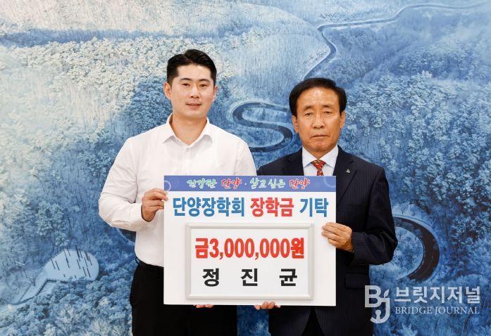 브릿지저널 김경미 기자 | 단양장학회(이사장 김문근)는 지난 22일, 단양신협에서 근무 중인 정진균 씨가 5년간 모은 장학금 300만 원을 기탁했다고 밝혔다.