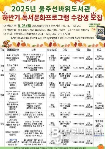 프로그램 참여 신청은 오는 25일 오전 9시부터 울주통합도서관 홈페이지에서 선착순으로 접수한다.